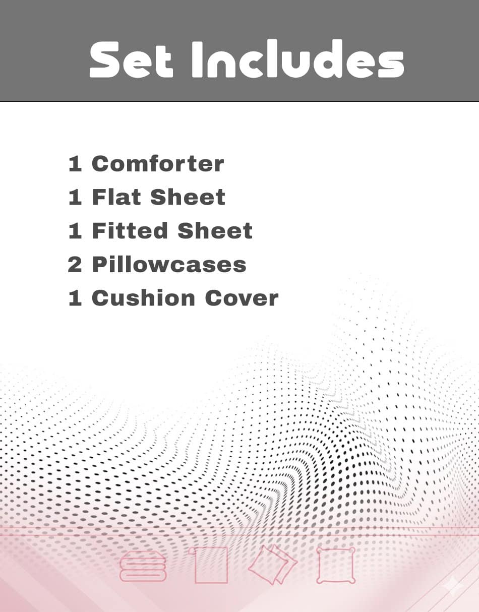 Built with a focus on quality craftsmanship, the fitted sheet ensures a secure hold, eliminating the hassle of adjusting your bed daily. The pillowcases and cushion cover elevate the visual appeal of your room by providing finishing touches that exude sophistication.