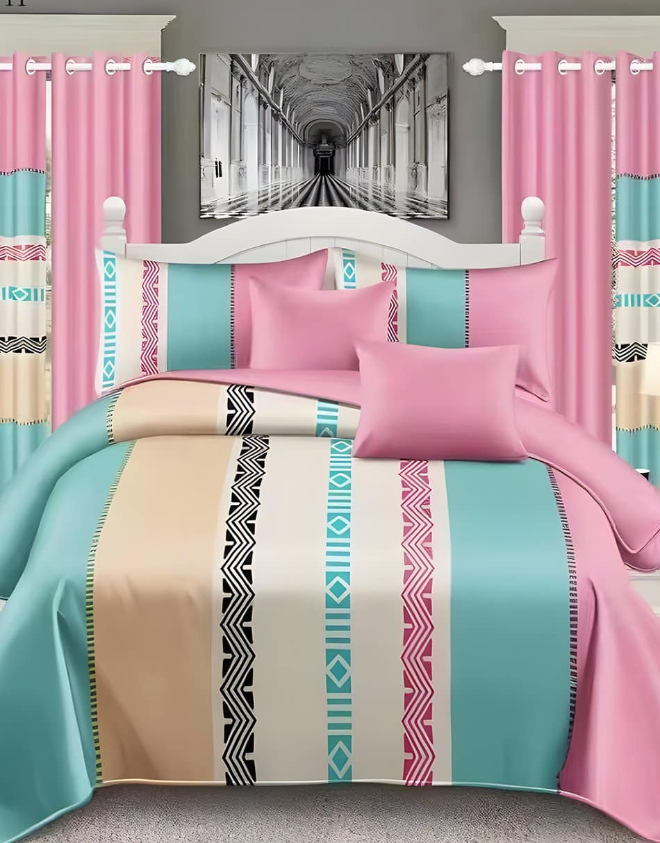 118 reviews for Pink & Cream Modern All-Season Bedding Set – 10pcs & 8pcs, 100% Cotton, Soft & Lightweight, Includes Pillow Covers & Stylish Curtains