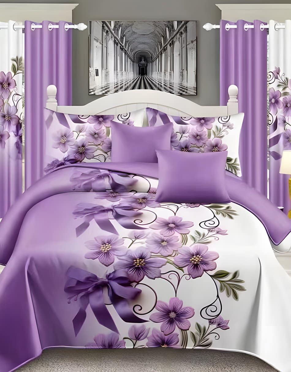 110 reviews for Purple & White Modern All-Season Bedding Set – 10pcs & 8pcs, 100% Cotton, Soft & Lightweight, Includes Pillow Covers & Stylish Curtains