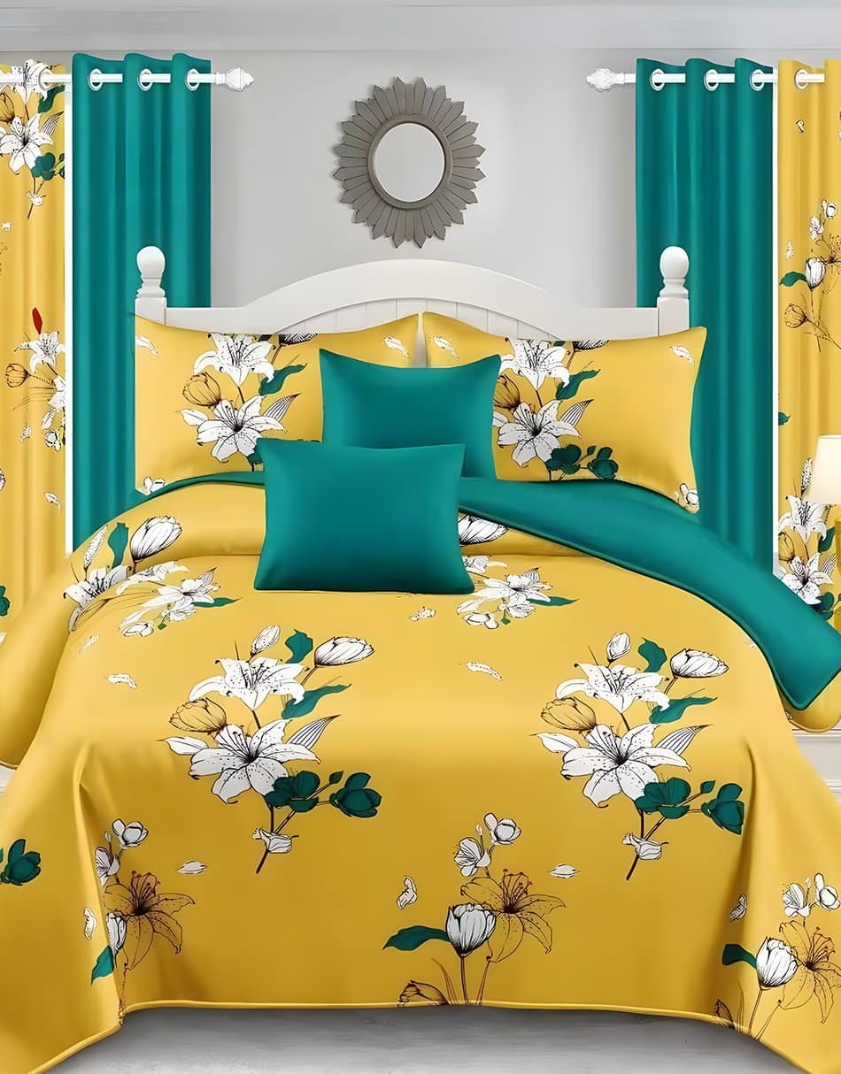 104 reviews for Yellow Modern All-Season Bedding Set – 10pcs & 8pcs, 100% Cotton, Soft & Lightweight, Includes Pillow Covers & Stylish Curtains