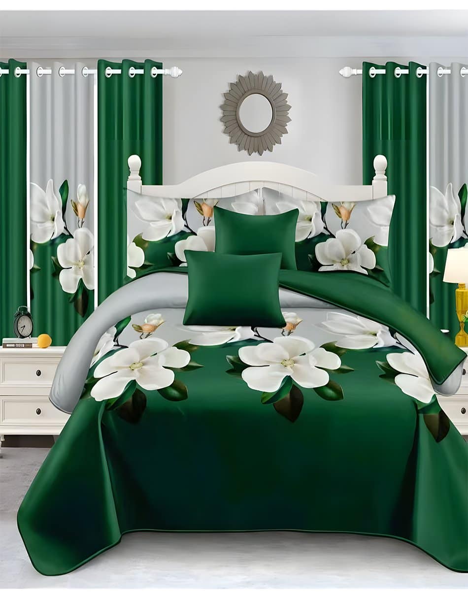 108 reviews for Green Modern All-Season Bedding Set – 10pcs & 8pcs, 100% Cotton, Soft & Lightweight, Includes Pillow Covers & Stylish Curtains