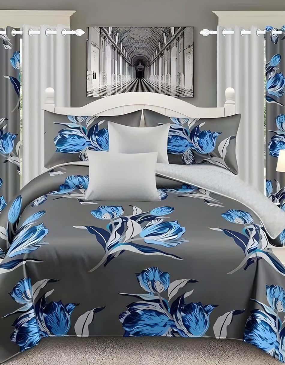 Ash Modern All-Season Bedding Set – 10pcs & 8pcs, 100% Cotton, Soft & Lightweight, Includes Pillow Covers & Stylish Curtains