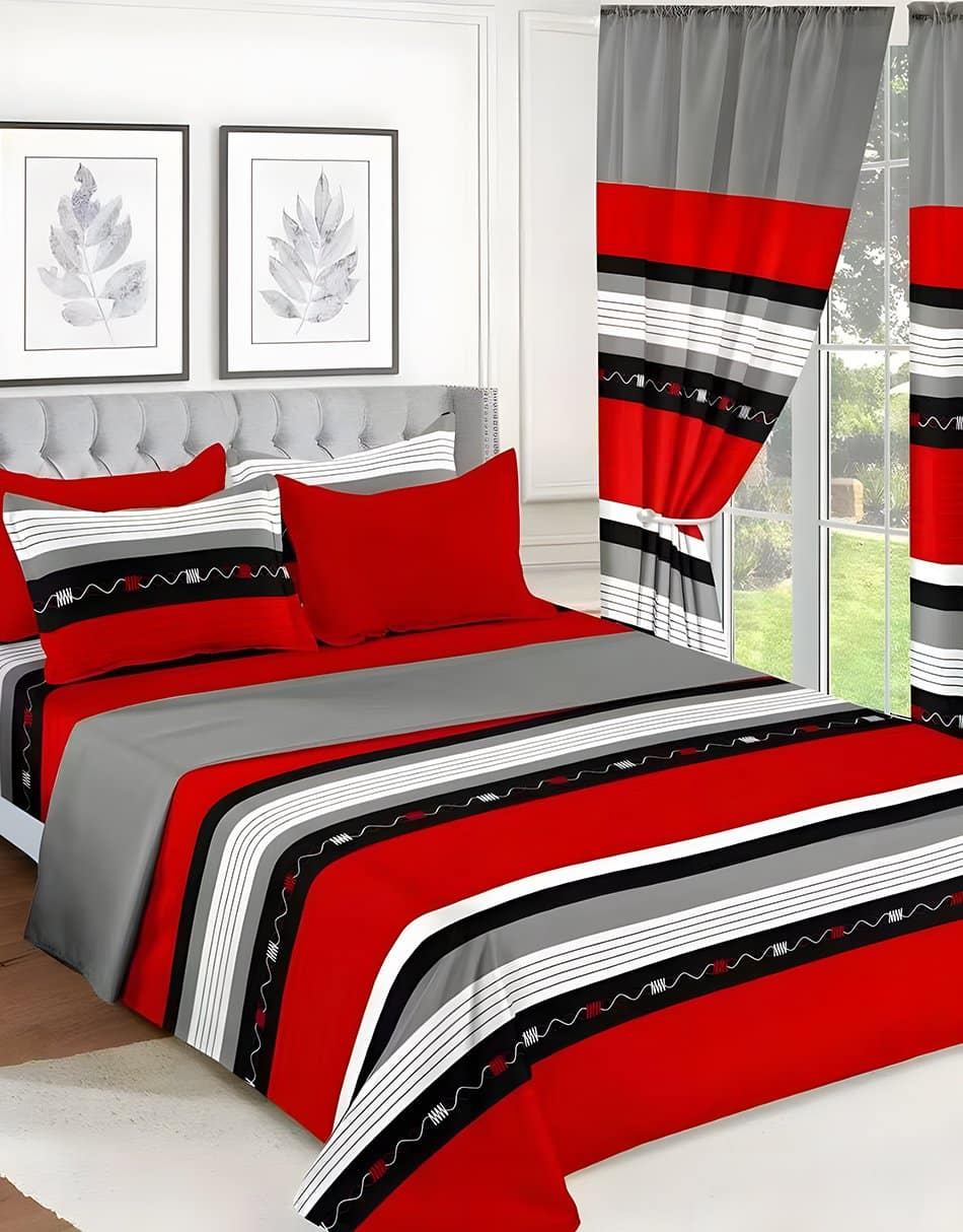 Multi Color Modern All-Season Bedding Set – 10pcs & 8pcs, 100% Cotton, Soft & Lightweight, Includes Pillow Covers & Stylish Curtains Multi Color Modern All-Season Bedding Set – 10pcs & 8pcs, 100% Cotton, Soft & Lightweight, Includes Pillow Covers & Stylish Curtains