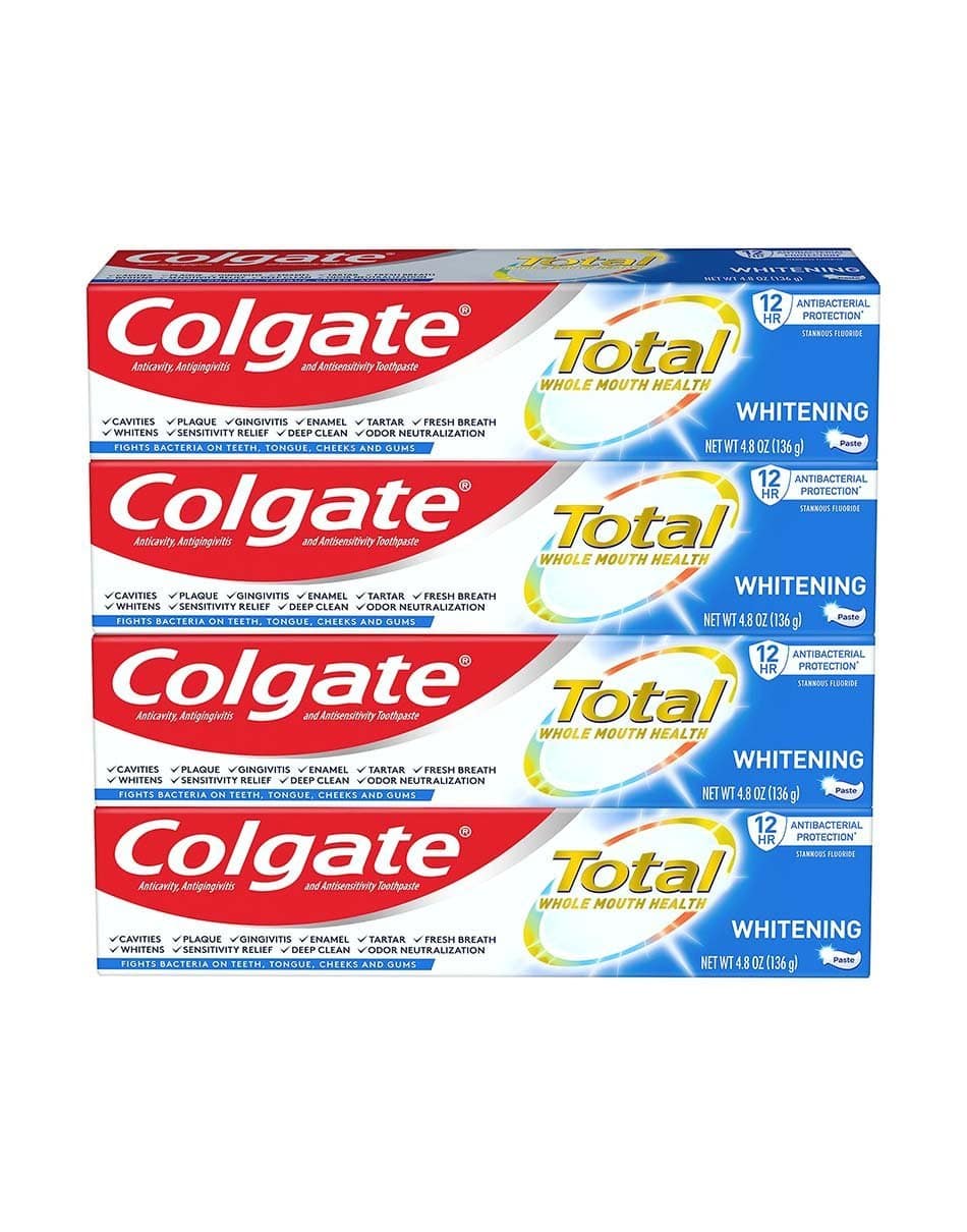 Colgate Total Active Prevention Whitening Gel Toothpaste with Fluoride, Bulk with Clinically Proven Formula That Fights Plaque Bacteria, Mint, 4 Pack, 5.1 oz